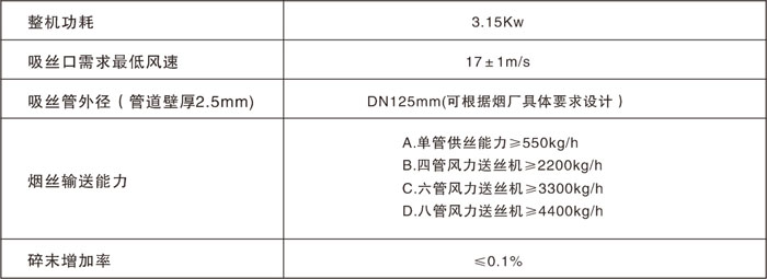 用途和功能 風(fēng)力送絲機用于將從貯絲柜來的煙絲松散,均勻地分配給多路風(fēng)管,再經(jīng)風(fēng)的負壓作用,抽吸至各臺卷煙機。